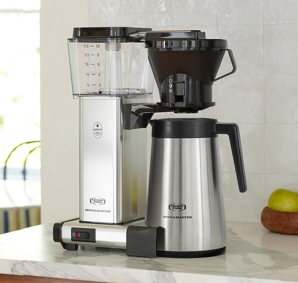 This model has an automatic brew basket stop, which stops the flow of coffee when removing the carafe. This brewer is ideal for those who typically brew a full carafe and are looking for the most straightforward process – add your coffee grounds and water, then flip the switch on – that’s it! 1.25L / 40 oz capacity.